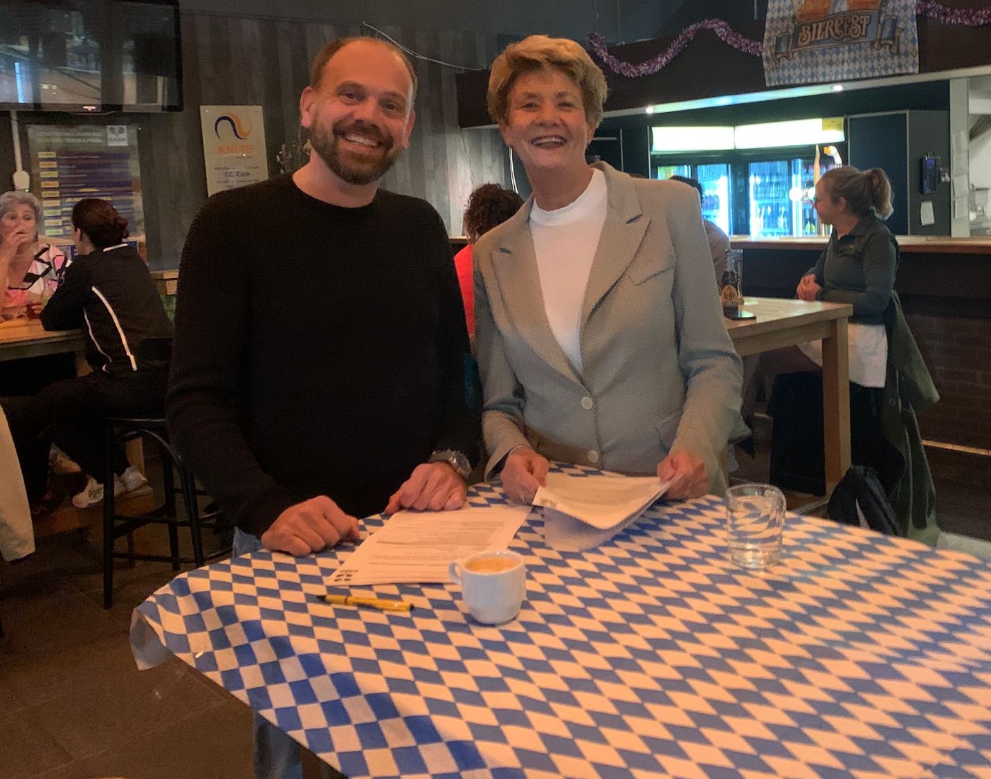 Jean-Paul Kuijpers van RB-Media en Jeannette Rutten van de sponsorcommissie van Cash tekenen het contract in het paviljoen.