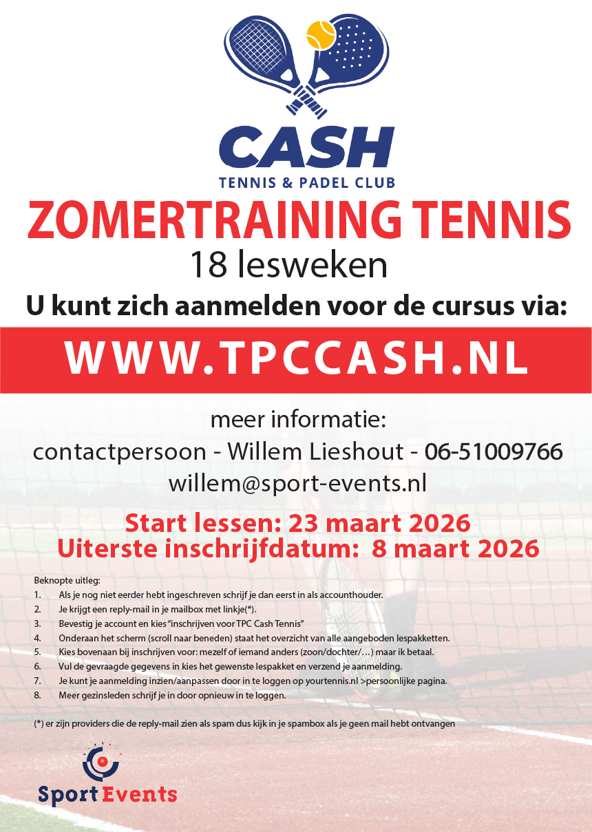 Inschrijven kan t/m 8 maart a.s. via deze link: http://www.yourtennis.nl/clubs/tpc-cash-tennis